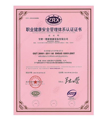 職業(yè)健康安全管理體系認證證書